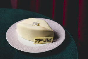 フォション・パリのシグネチャーケーキ「Bisou Bisou(ビズビズ)」の2024年ノエル限定バージョンは中にとろとろイチゴと濃厚イチゴのジュレ、ムース、スポンジが層になり、外側を純白の雪をイメージさせるホワイトにコーティングしました。クリスマスエディションとして初登場のフレーバーをお楽しみください。