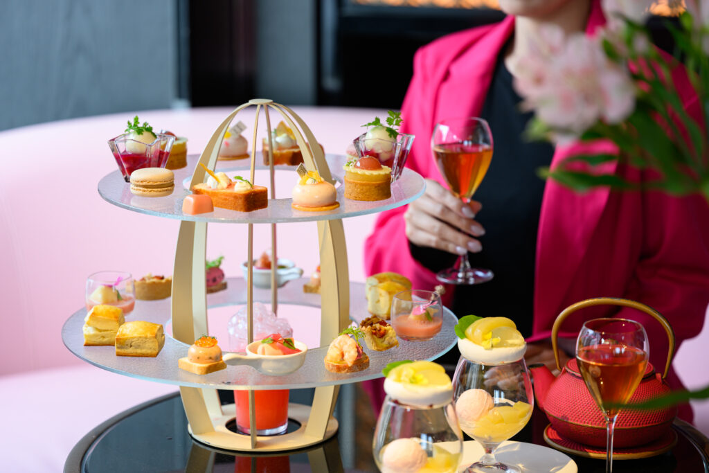 前半後半で内容を変え、2種類のフルーツを使用したスイーツとセイボリーで夏の果実のみずみずしさを存分に感じていただけます。また、ホテルの井戸でくみ上げるフォションホテル京都自慢の良質な地下水「千年水」を使い、清涼感をたたえた雫に見立てたパルフェは、ぷるぷる食感でひんやりとしたクールな味わい。桃とシャインマスカット、それぞれの果物と合わせてお召し上がりください。ウェルカムティーを含むアイスティーも「千年水」でお淹れいたします。グランティーマスターの特別技法により約20時間かけて抽出した紅茶は、果実の酸味と甘みに寄り添い、より風味が豊かになる味わい。光り輝くような香りがする紅茶の旨味をご堪能ください。フレッシュなフルーツと「千年水」が織りなす夏のアフタヌーンティーを味わいながら、フォションホテル京都ならではの涼を感じてみませんか。